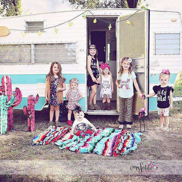 She's a {{WILD}} child, got a {{VAGABOND}} soul with a whole lot of {{HIPPIE STYLE}}. Boho & Jangles boutique started out with a racing mind, a wandering heart and a love for anything out of the ordinary! We are here to offer Boho threads for your little #BohoBabes @ #BohoJanglesBoutique- this is where leopard is *ALWAYS* a neutral, SeQuiNs & FriNge are an everyday attire, and if you haven't been introduced to Merle, Dolly, or Willie, then step inside with your <<Tony Lama BooTs on>> and let us mosey you around! Thank you from the bottom of our fringed boots for choosing to shop with us!!! xoxo ~ Shelly