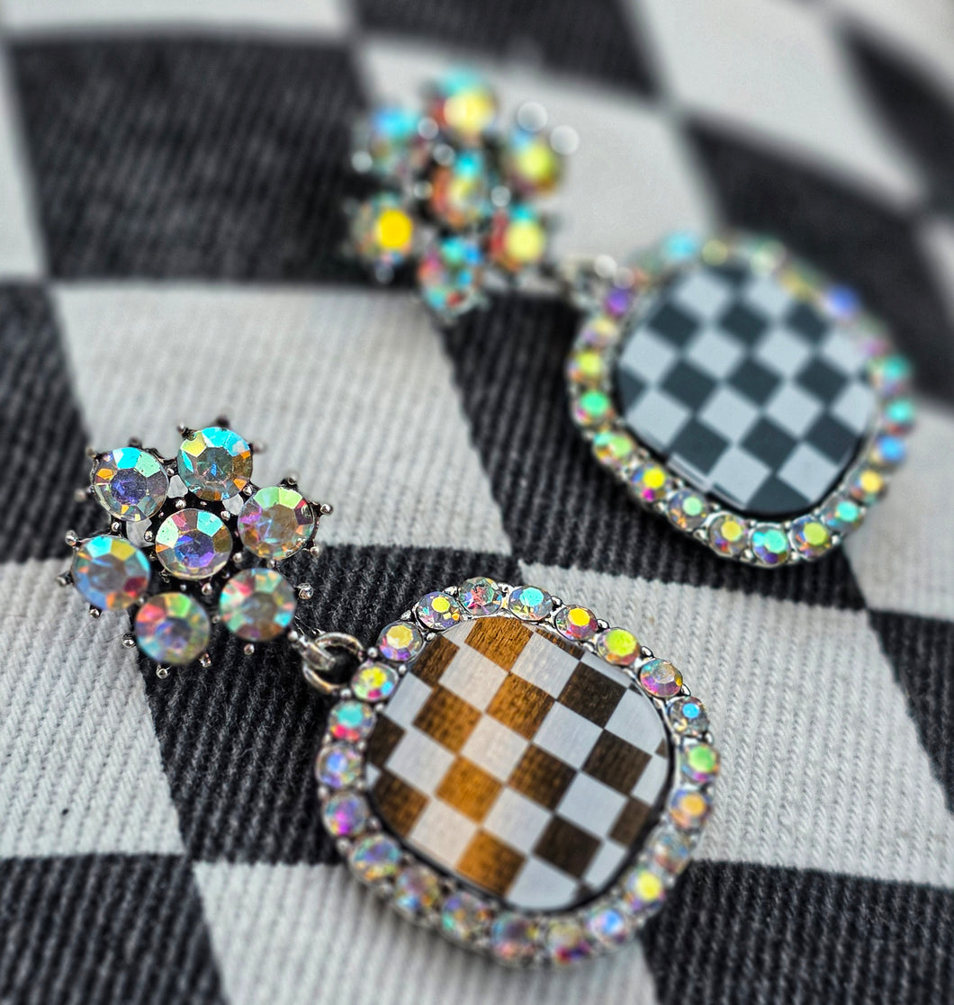 Checkmate checkered bling earrings